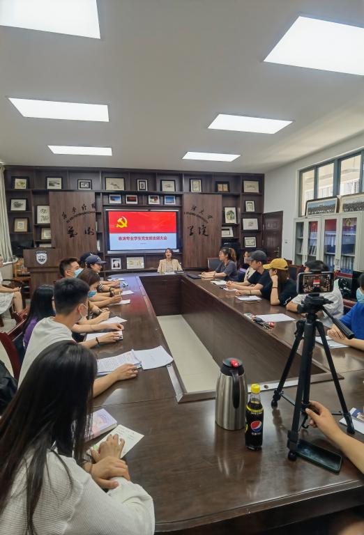党委书记梅林竹为表演专业学生党支部讲授专题党课,支部全体党员参加学习。
