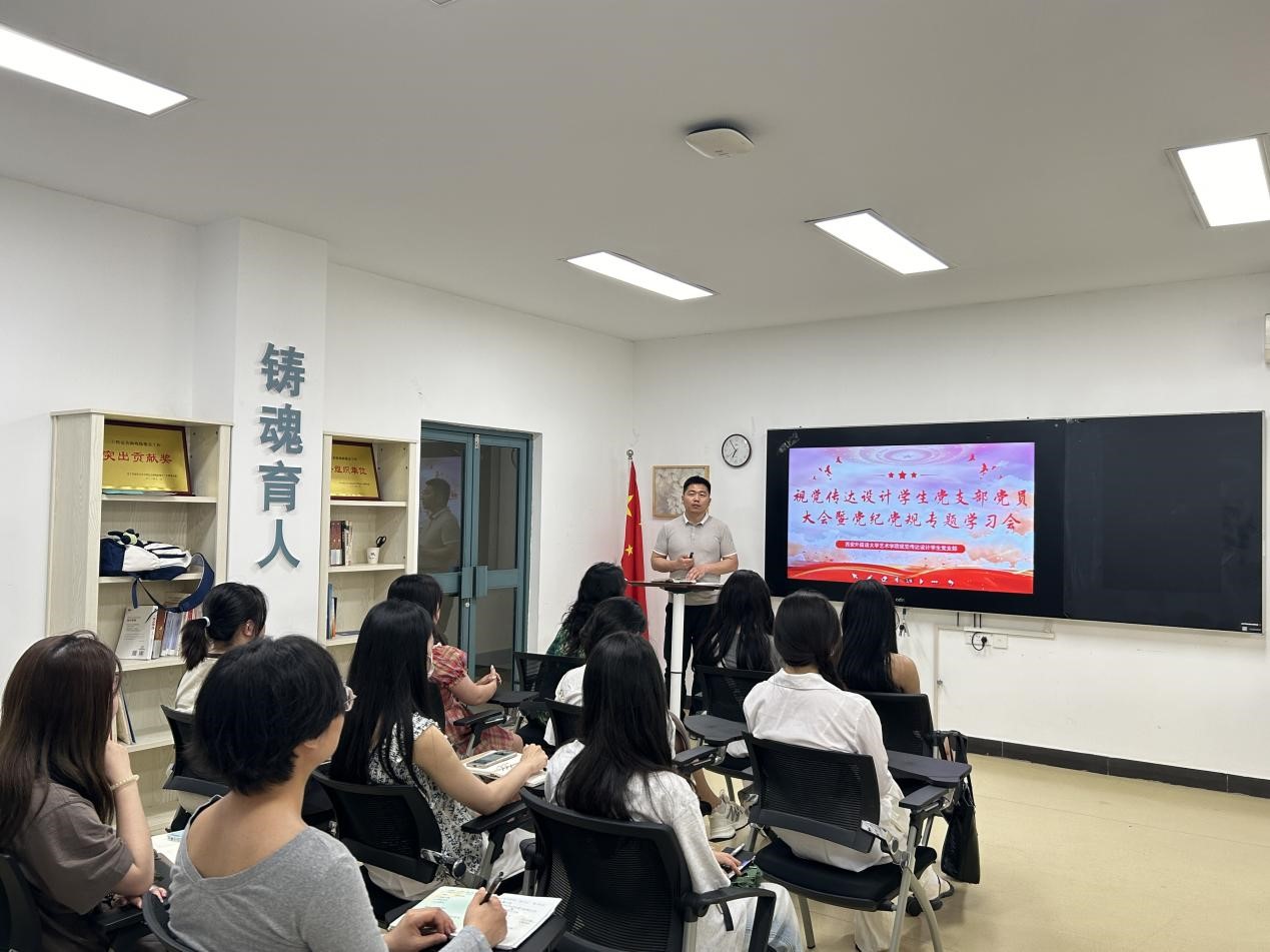 为进一步强化全体师生党员的党纪法规意识,提升师生党员的党性修养,自觉做到守纪律、讲规矩、知敬畏、存戒惧,5月16日,视觉传达设计专业本科生党支部在1B103思政进公寓学生干部工作站召开党员大会暨“学党规党纪 强党风党性”主题党日活动。会议由党支部书记冯鑫主持,支部全体学生党员参加会议。
