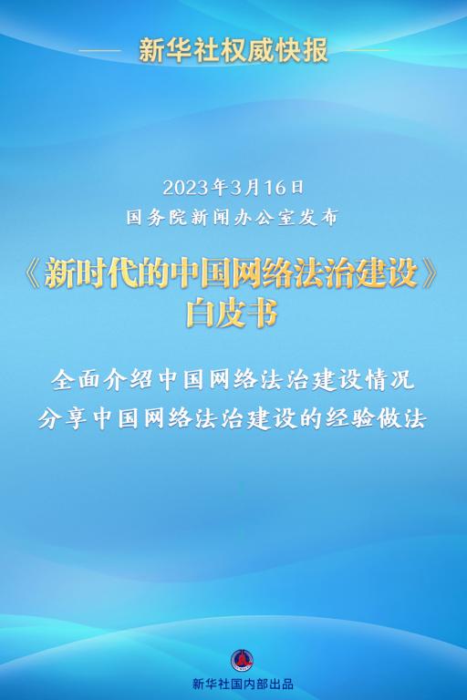 新华社北京3月16日电 国务院新闻办公室16日发布《新时代的中国网络法治建设》白皮书。全文如下: