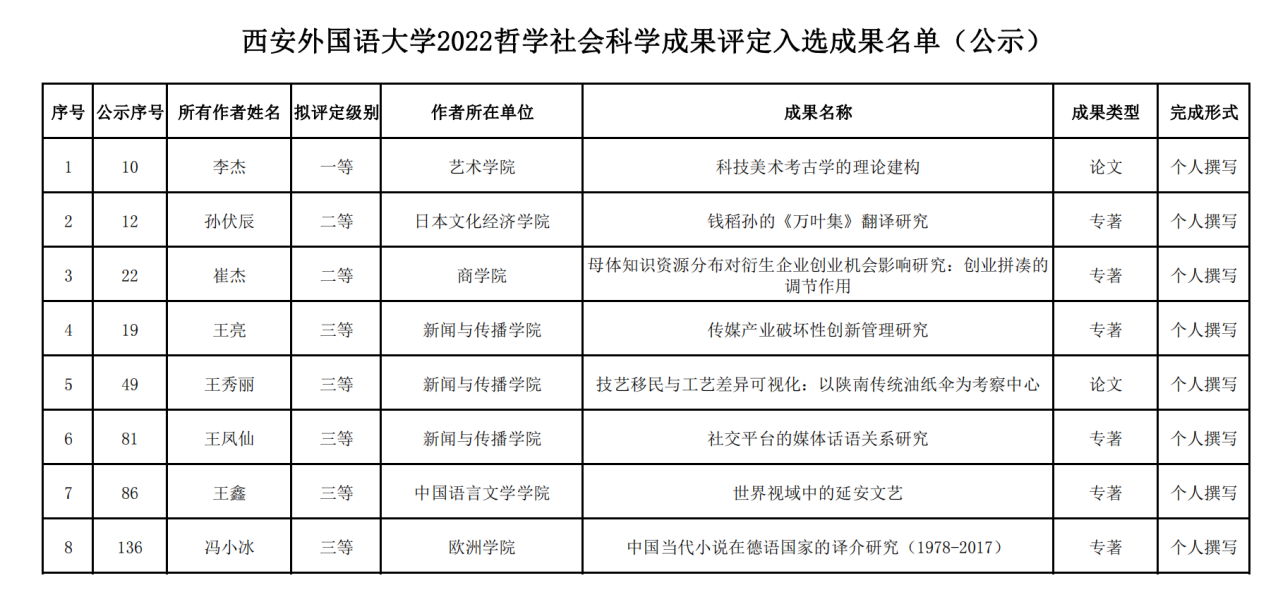 2022年度西安市哲学社会科学优秀成果奖评定结果公布,我校共8项成果入选,其中一等奖1项,二等奖2项,三等奖5项。本次获奖是我校历年来最好成绩,取得了获奖数和高级别奖项的双重突破。绅士漫画