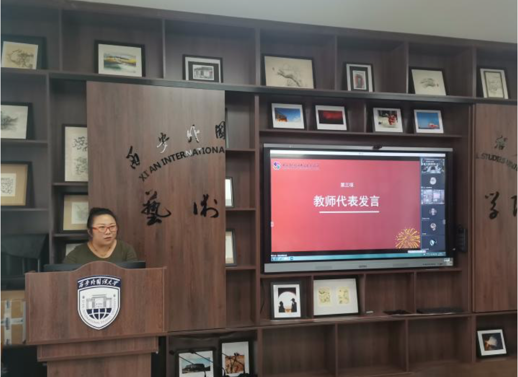 教师代表弓淼代全体教师表达了对新生们的欢迎,她承诺教师们将秉持着“博古通今,融贯中外,德善相继,自强不息”的西外精神,全力以赴尊崇科学教育,培养学生专业素养,并希望同学们能够做一个关心国家,勇于担当,追求真知的新时代大学生,用勤奋和汗水实现自己的梦想。