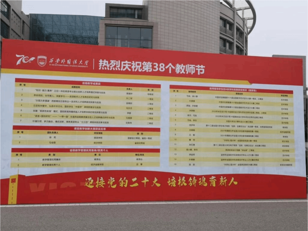 院长李杰作为教师代表分享了自己与西外同向并行十三年的心路体会,自己见证了西外十余年的发展,同时西外亦见证了每一位教师的成长,每个西外教师都要珍视人民教师的崇高信仰,立足新西外、面向未来,以拳拳之心为民族复兴的伟大事业培养合格的建设者和接班人。