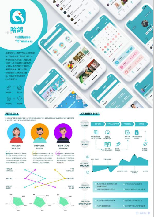 “哈鸽”APP,以“抗疫+环保”为出发点,解决人们对于过期药品的处理问题——回收代替浪费。APP基于对药物的信息展示,相关禁用搭配、用药提醒、药品回收等,健康、养生、保健、科学、环保。疫情暴发的三年中,大众外出少,买药不再像从前那般便利,特别是特殊药物。因此,大家都养成了囤药的习惯,导致药品闲置、放置过期等问题出现。居民对药品有效期的关注程度不高,尤其在家庭单位中,成员对于过期药品回收知晓率和参与度较低。大家对过期药物产生的危害认识不全面,它不仅会污染土地和水资源,严重者还可能破坏生态食物链,且具有挥发性的过期药物,还可能会成为过敏源。
