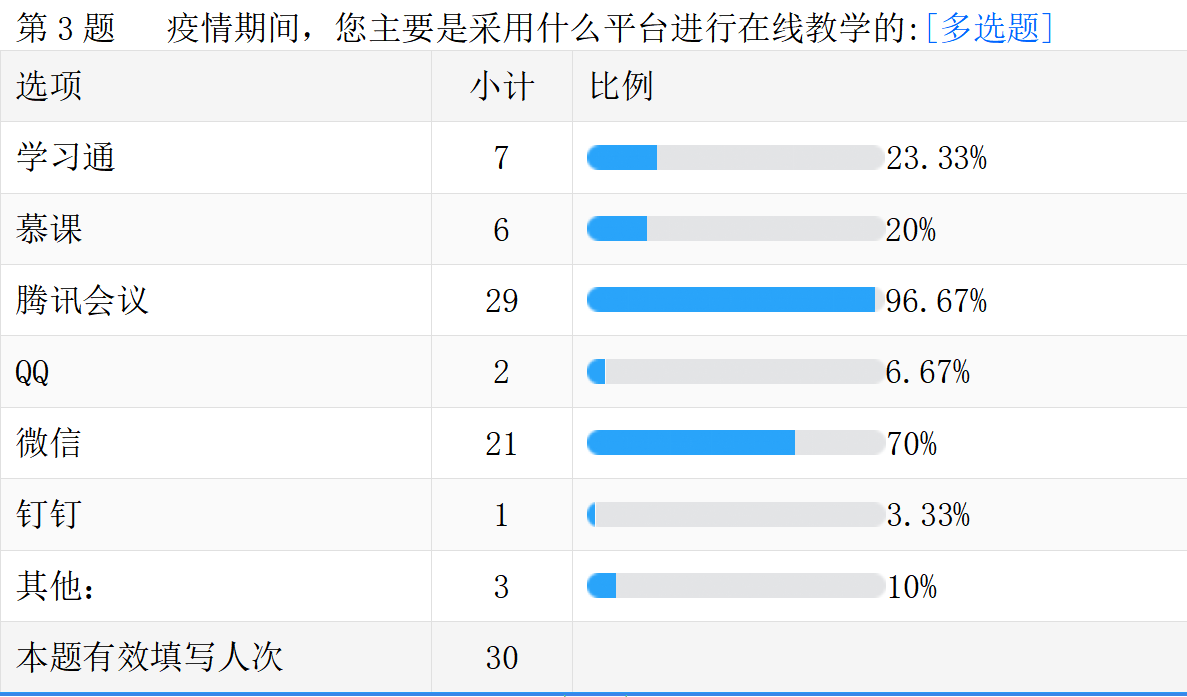 线上教学的真实情况。以下是调查问卷的部分数据汇总。
