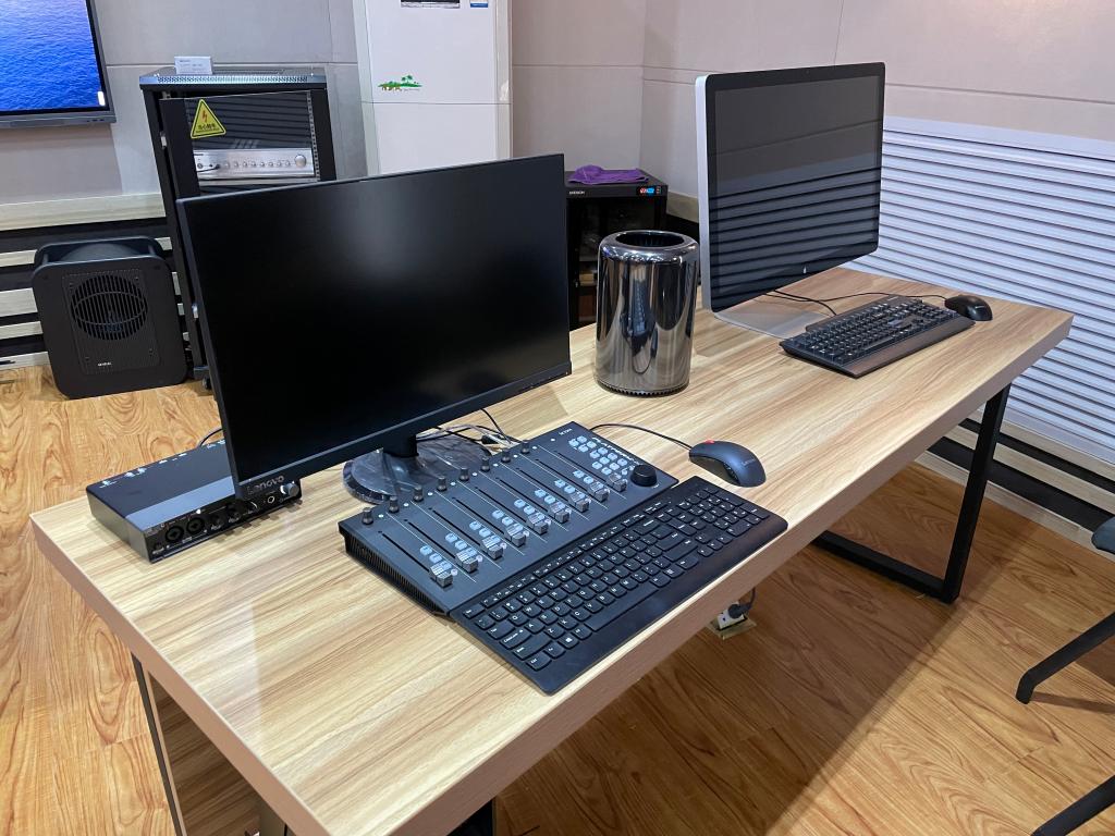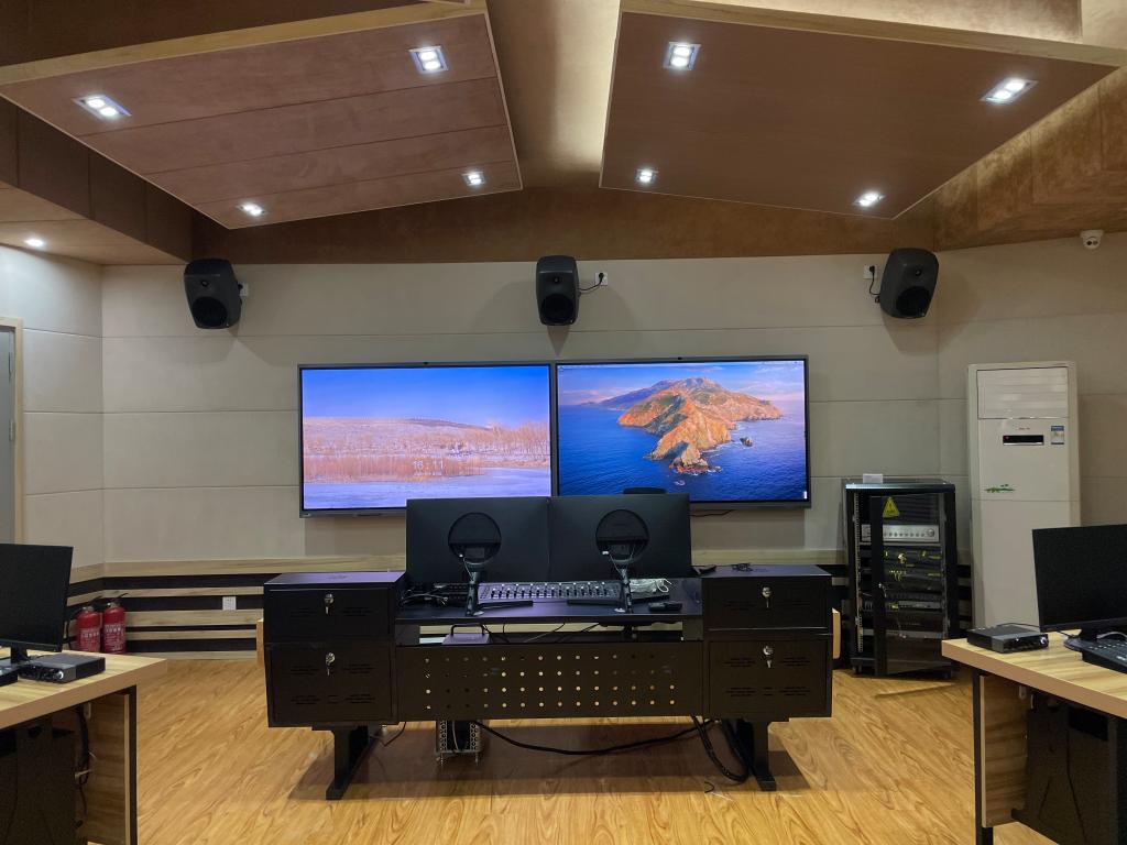 该中心总造价超过260万元,拥有专业级的数字音频工作站10个、国际化工作坊MACpro工作站5个可满足各类影视声音制作的要求,Neumann U87 两只、Schoeps CMIT 5u 两只、真力5.1监听系统、25只专业级监耳机、2台ZOOM F8影视同期录音机等专业级的音频硬件设备,实验室还配备了16只高清VR头显,用于完成情景交互式的声音设计。