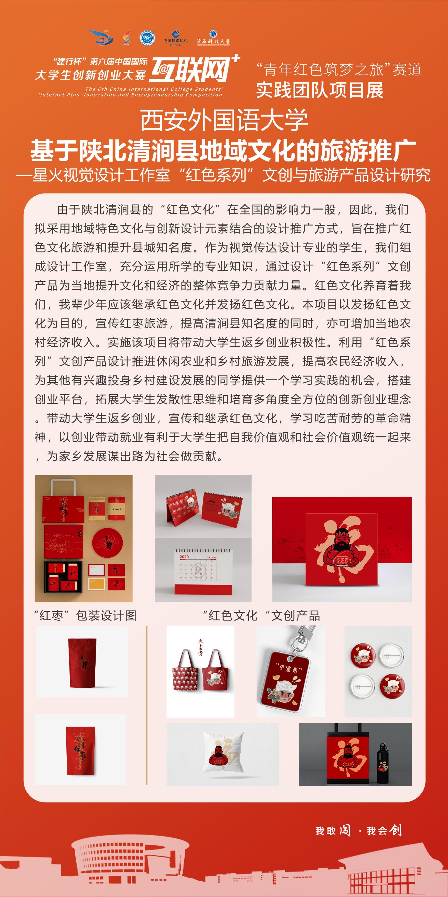 视觉传达设计专业侯小春老师指导,视觉传达设计专业18级王伟博同学主持,王鑫、蒲国平、石琳琳、刘嘉钰、袁佳敏同学参与的互联网+项目--《基于陕北清涧县地域文化的旅游推广——星火视觉设计工作室“红色系列”文创与旅游产品设计研究》在已获得我校校级金奖的基础上,通过全省高校“互联网+”项目专家评审喜获“铜奖”(“青年红色筑梦之旅”赛道)。