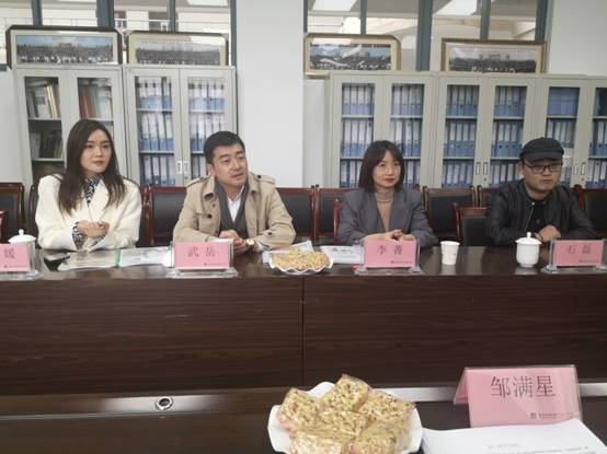专业分布、教学师资情况进行了总体介绍。表演教研室主任陈乃嘉对表演专业近些年的实践教学、实习合作情况做出介绍。陕西宇晅影视文化传媒有限公司总经理武岳就公司概况及影片拍摄、项目筹备情况进行了详细的说明,并希望与学院在表演、后期制作、项目实践上有进一步深入的交流及协作,双方也就合作的相关具体事项交换了意见并进行了展望。邹满星副院长诚挚邀请来访公司作为嘉宾,参与学院“第三届'学院杯'影视、动画、游戏角色配音大赛”并给予指导。会后,双方在学院会议室进行了合影留念。