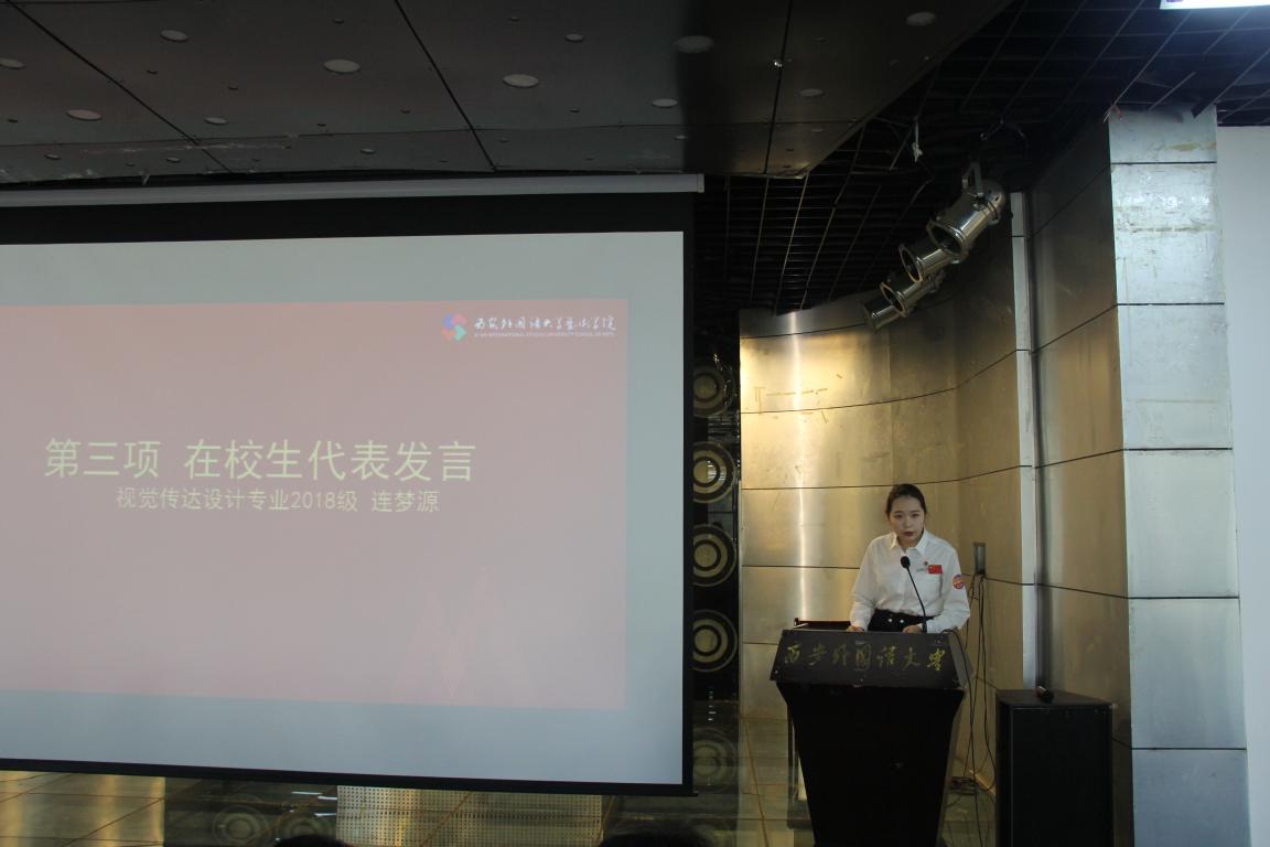 增长自己的艺术才华、放飞艺术梦想。她祝愿新同学们拥有“可爱的灵魂、健康的体魄、智慧的大脑和行动的身体”,做一个有信仰的人。她勉励新同学Actions Speak Louder than Words,期望大家做逐梦艺术的行动派,以大学四年的学习为基础刷新人生,创造辉煌!
