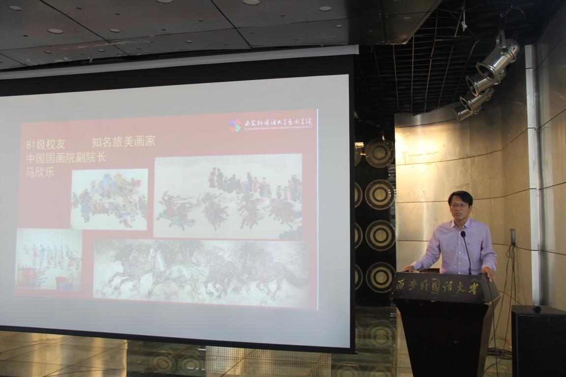 随后,我校杰出校友马欣乐先生向同学们讲述了他自身语言学习和艺术学习的历程,他深刻感悟到“艺术+语言”的重要性,因此鼓励大家利用好绅士漫画