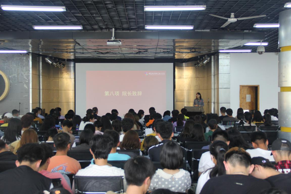 典礼最后由南华院长致辞。她首先向新生介绍了学院有关教学、科研、师资、实验室基础设施以及对外合作交流方面的概况。接着,她从学习、生活、理想、感恩等方面给新生们提出了期望。她鼓励新生们发挥特长,充分利用学校和学院“艺术+语言”的课程资源以及大学的软硬件学习环境,在绅士漫画