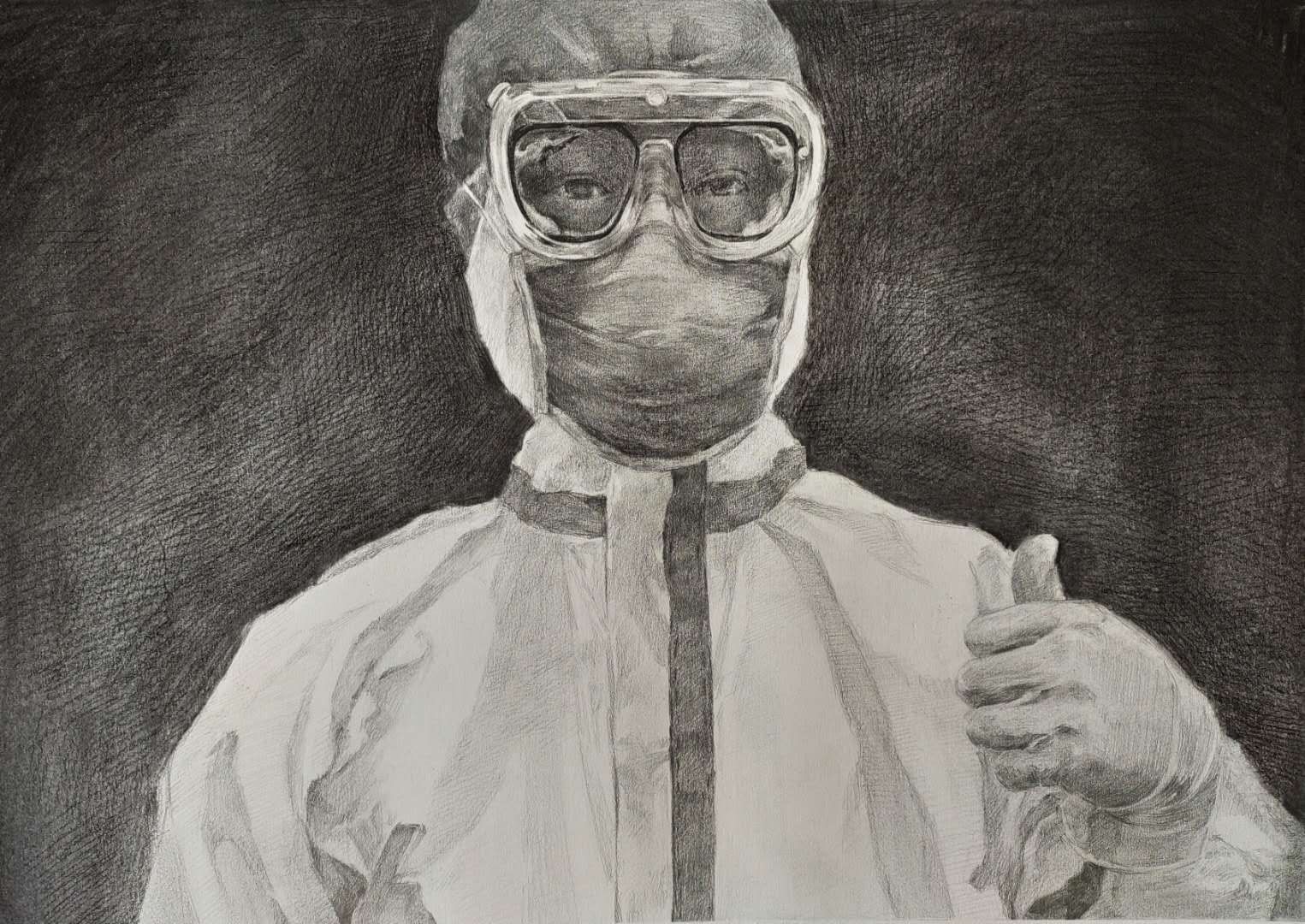 在全社会因防控疫情而进行线上教学的大背景下,构成素描课程主动结合专业特点,结合当下的社会现实,把“防控疫情”创作引进到作业体系。课程要求每个学生利用已有的创作技能进行实践,这也是对学生所学知识的实践,更重要的是让学生参与到这场重大的社会事件中去,让学生体会到艺术专业虽不能像医务工作者一样身处抗疫第一线,但是也有战“疫”的“武器”,那就是我们的作业和作品,这种参与社会大事件的荣誉感一定会激发的学生的创作激情,在这个过程中产生的作品以及获得的经验即是教学成果,也是教学育人的终极目标。