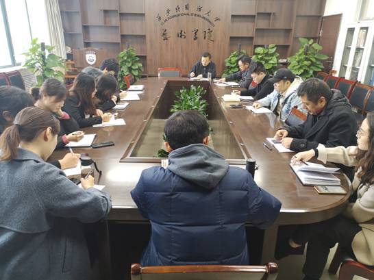召开“不忘初心、牢记使命”主题教育第十二次集中学习会。会议由党委书记李敬先主持,各教研室主任、党支部书记、各年级辅导员、行政班组参加学习。