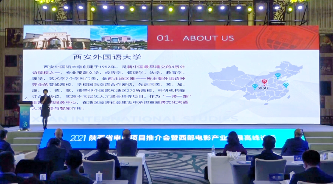表演专业副教授张婷从影视制作服务、译介合作等五个方面进行讲解,突出展示了我校涉及影视行业的艺术类专业集群优势、多年来致力于多语种讲好中国故事的实际行动和“一带一路”语言协同服务工作经验,体现我校在陕西影视发展方面具有的特殊性与重要作用。项目受到现场专家、影视企业及投资单位的关注与好评。