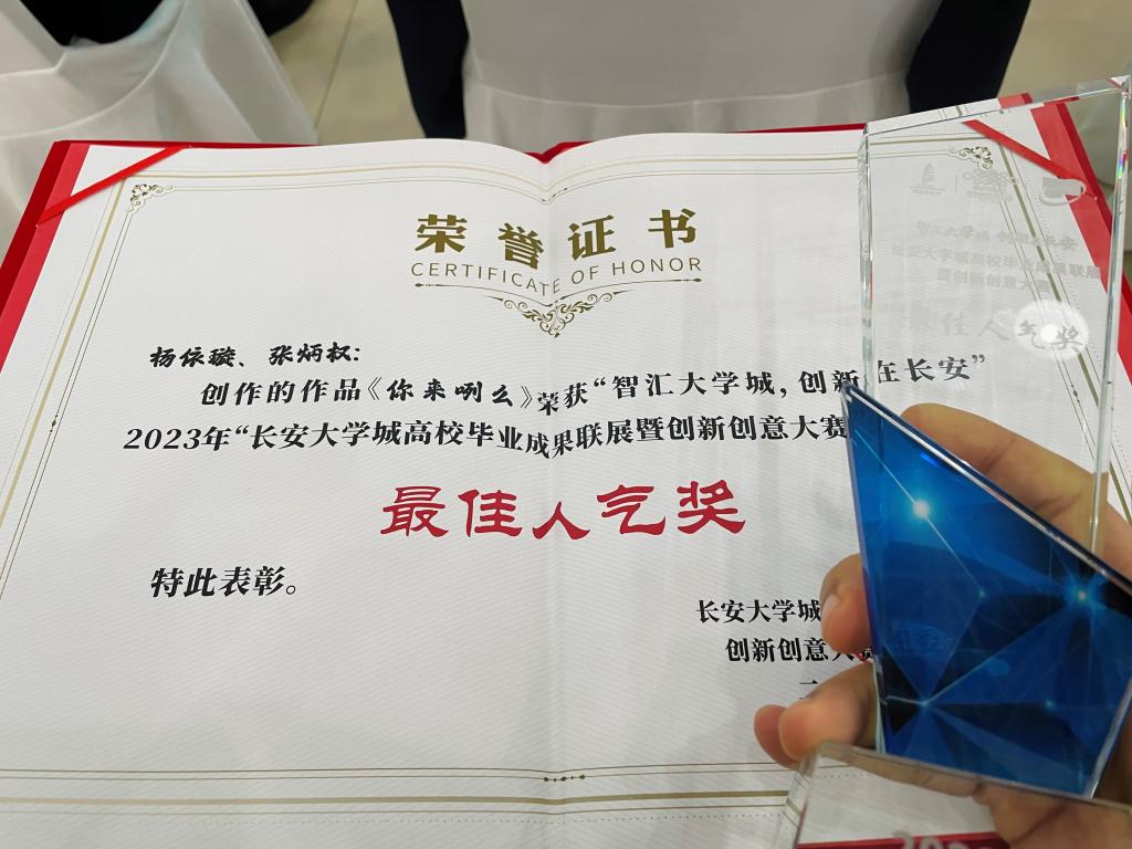 杨依璇、张炳权同学的毕业设计《你来了吗》在此次联展中广受好评。该作品以弘扬陕西传统文化,讲好中国故事为出发点,作者MG动画的形式,表达对家乡的热爱,推动地域文化的传播,响应了二十大报告“增强中华文明传播力影响力,坚守中华文化立场,讲好中国故事、传播好中国声音,展现可信、可爱、可敬的中国形象,推动中华文化更好走向世界。”