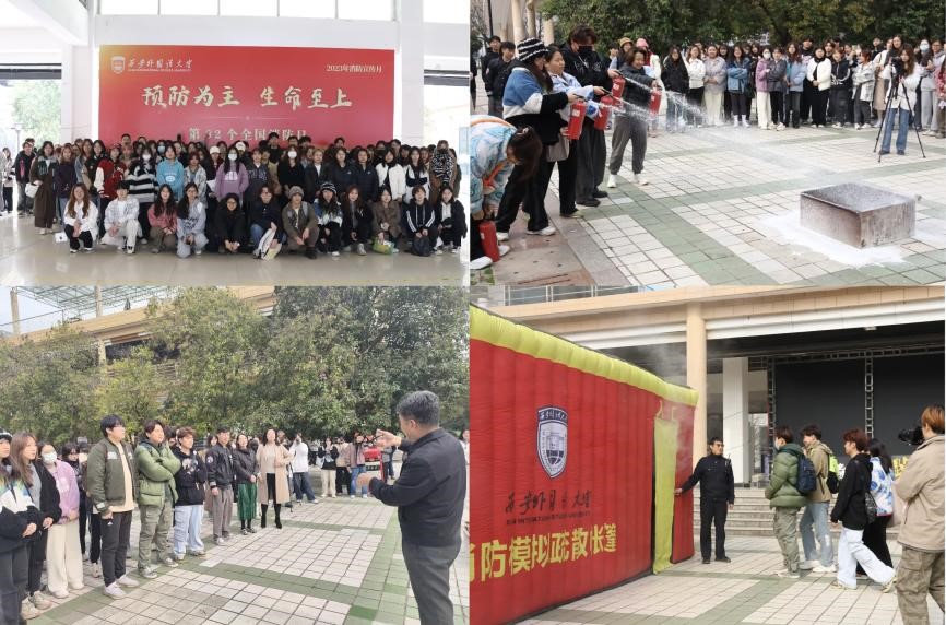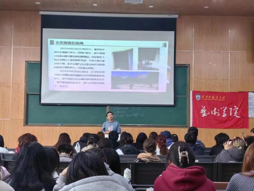 消防安全教育系列活动的实践环节。学院于11月3日邀请校保卫处赵鹏辉老师为全院学生开展以“防火防诈骗”为题的专题讲座。讲座全面普及了校园安全常识,切实提高了学生的安全防范意识和应急能力。赵老师通过多个真实案例向同学们讲解了身边可能存在的消防安全隐患和校园火灾的诱发原因,并呼吁大家自觉遵守学校宿舍消防安全相关规定。学院积极通过官方公众号推送消防主题教育系列推送,线上营造“人人学消防,消防呼人人”的良好氛围。辅导员深入宿舍开展消防安全教育,走访宿舍摸排消防安全隐患,教导学生自觉维护公共场合的消防设施,熟悉逃生通道,提升自我防范意识。各年级举行消防安全主题班会,认真学习消防安全知识,强化消防自救能力,筑牢消防安全“防火墙”。