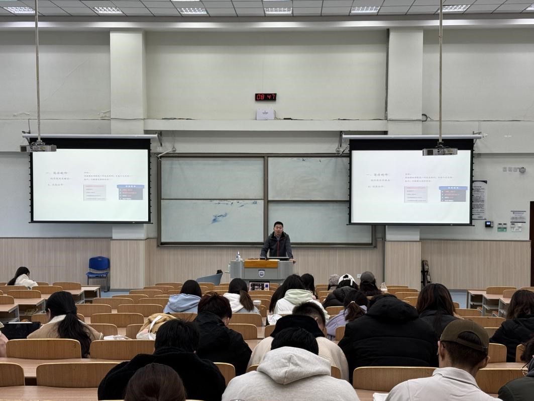 毕业班辅导员冯鑫作了题为《完善求职简历,提升就业能力》的专题讲座。冯鑫以当前就业形势、毕业去向类型、求职签约流程和各专业近年的毕业生去向数据作为切入点,引出了本次讲座的主题。他强调简历是所有面试的基础,好的简历能够给面试官留下良好的第一印象,帮助毕业生从激烈的求职竞争中脱颖而出。他主要从简历的主要内容、简历制作的关键点、注意事项、优秀简历展示几个部分向在场毕业生开展简历撰写培训,并展示了各专业往届毕业生和研究生的优秀作品集,帮助毕业生完善个人简历,打造属于自己的靓丽”名片“。