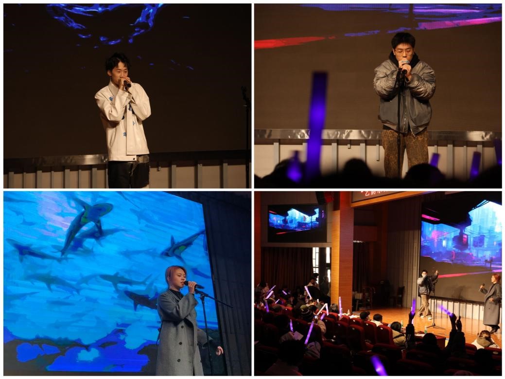 灯光闪烁、荧光棒挥舞,郅梓禾、李瑞阳同学带来的歌曲串烧用跳跃的音符将全场的气氛点燃!