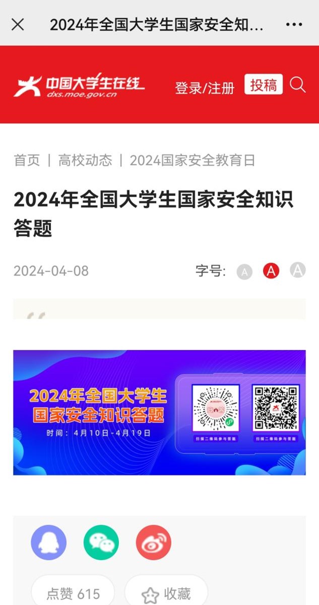 全体师生参加了以“国家安全知识竞答”为主题的线上答题活动,组织全体学生积极参与,共计600余人参加答题。通过线上答题的方式绅士漫画 师生不仅提高对国家安全知识的掌握,还深化了同学们的国家安全意识,提升了大家的安全素养和应对突发事件的能力。