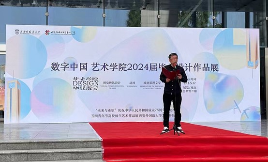 学子们大学四年学习成果的集中展示,是展现学子们综合素质和实践能力的重要载体,凝聚了同学们四年的心血,体现了大家对艺术的新认知。同时他勉励同学们担负起中华民族伟大复兴的责任,学思并进,彰显西外学子的使命与担当,用艺术创作、弘扬和传承中华文化,记录和讲好中国故事。为人民创作,为时代讴歌。