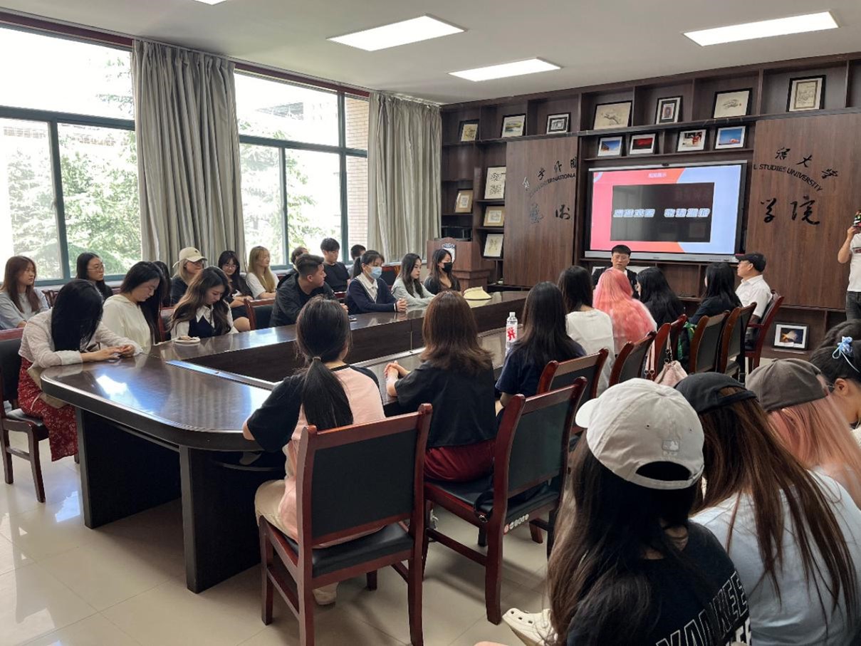 随后,各年级学生代表50余人参加交流会,会议由张勤宝主持。首先,张勤宝向参会师生介绍了优秀校友著名导演邢潇,并对其表示热烈欢迎。邢潇为我校2007届表演专业毕业生,现为山东影视集团导演。作为国家二级导演、80后编剧,邢潇同时也是中国电影导演协会会员、中国电影家协会会员、第五届中国夏衍电影学会理事、北京青年影展推广大使。曾入围第41届蒙特利尔国际电影节,先后获得第20届上海国际电影节电影频道传媒关注单元评委会特别表彰奖、第17届中美电影节年度新晋导演奖、第6届欧洲万像国际华语电影节青年导演奖、第9届澳大利亚国际华语电影节文艺片新导演奖、第9届澳门国际电影节最佳编剧奖提名等。其执导作品包括《大雪冬至》、《仲肯》,剧集《致我们甜甜的小美满》、《我的奇怪朋友》、《你好呀,我的橘子恋人》均获得较大反响。