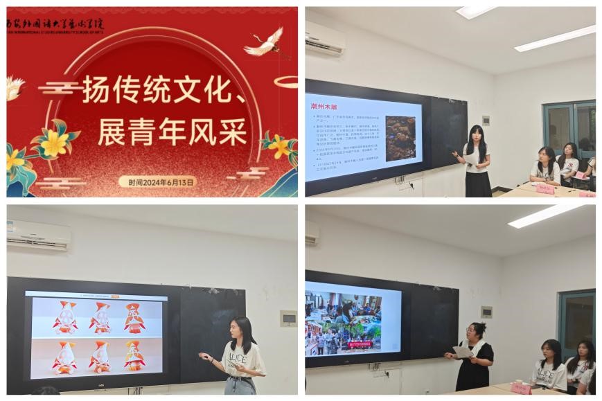 随后,与会师生集体学习了习近平在文化传承发展座谈会上的讲话(节选),学生代表有的结合了其“互联网+”项目《陕西棉絮画的传承与创新》、中期展览作品《潮州木雕》、优秀结课作业《半坡博物馆的文创制作》等谈到如何利用自身专业去继承和发扬传统文化;有签约格力集团的毕业生代表结合自身的职业选择和未来发展方向、实习实践的经验感悟进行了分享;还有同学结合自己在参与绅士漫画