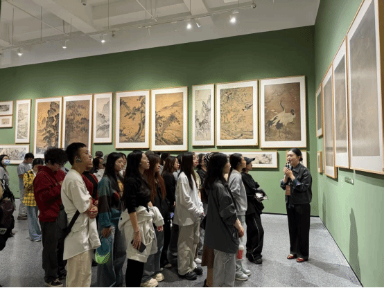 展览现场,师生们驻足于《明皇幸蜀图》《千里江山图》《鹊华秋色图》等经典作品前,沉浸式感受千年绘卷的艺术魅力与文化底蕴,体会到传统绘画中“天人合一”的哲学思想与“师法自然”的创作精神,感受“外师造化、中得心源”的艺术追求。为师生上了一堂生动的传统文化思政课。