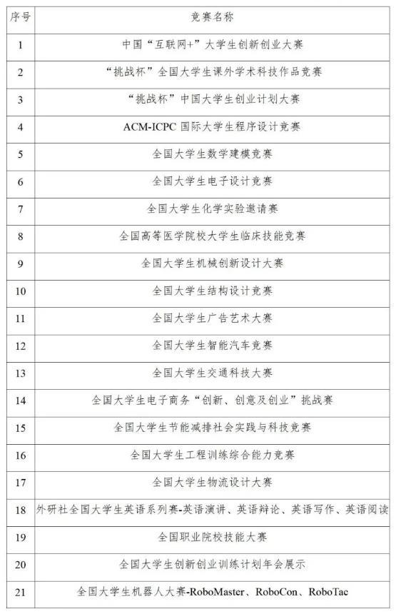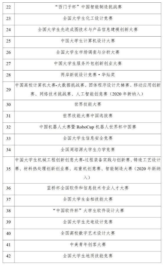 附 件 :《2020 全国普通高校大学生竞赛排行榜内竞赛项目名