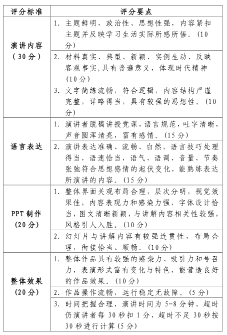(二)参赛要求。比赛采取现场脱稿讲授的形式进行,微党课时间限制在5-8分钟以内。作品可以采用讲座式、访谈式、情景式、案例式等形式,作品应导向明确,立场清晰,坚持社会主义核心价值观。参赛人员须着装正式,佩戴党员徽章。学院党委将进行现场录制。