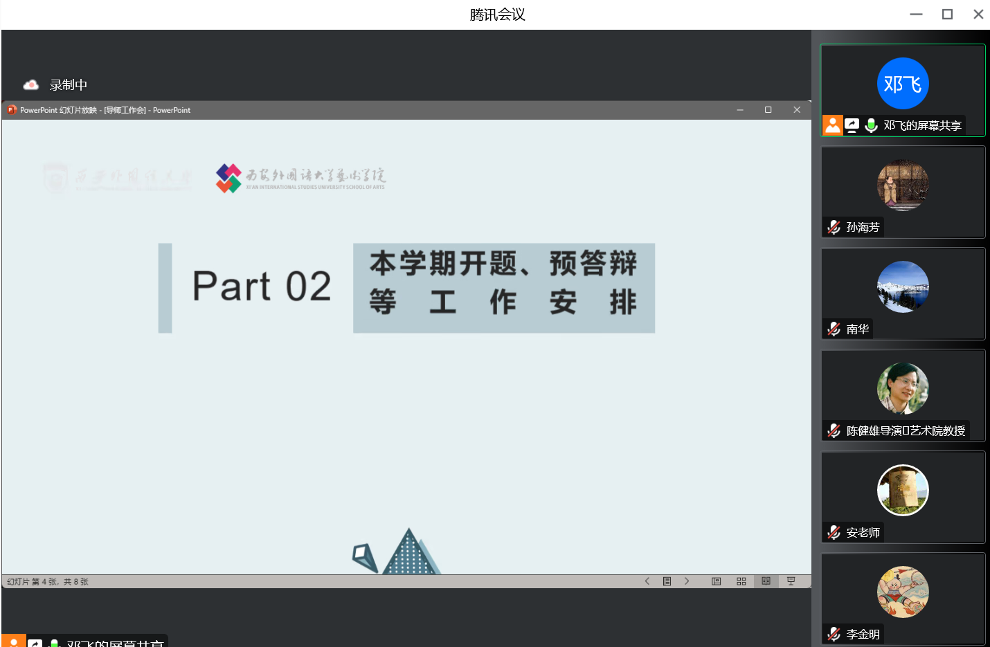 会上,邓飞对近期研究生招生和培养工作进行了情况通报,特别强调要细化各项工作,严格落实学校的各项规定,严把教育教学关,在招生、开题、预答辩等具体工作中强化要求,全面提升研究生的教学质量。