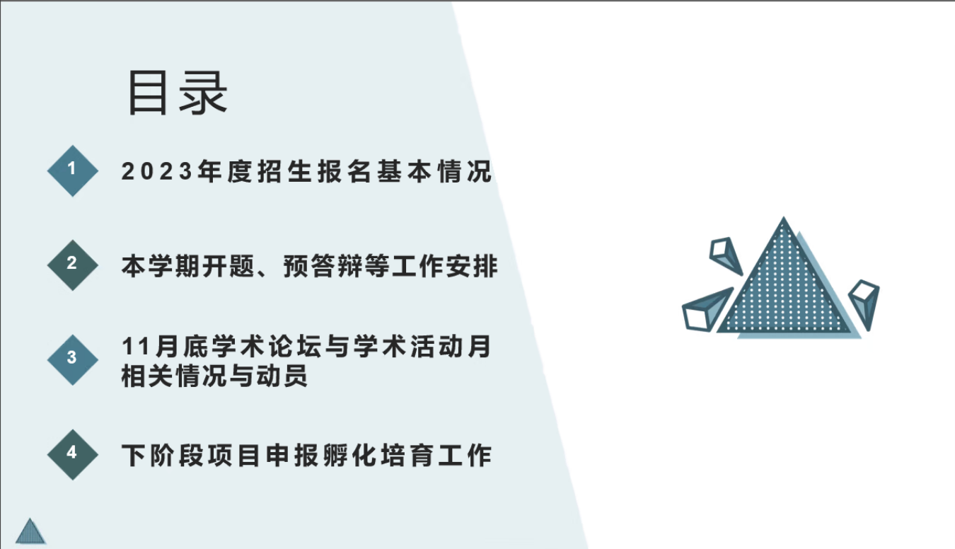 在线召开了研究生导师工作会,会议就2023年度招生、本学期开题、预答辩等专项工作进行了具体部署,并就近期举办的学术论坛、学术月活动与项目申报工作进行动员,院长李杰、副院长邓飞及全体研究生导师参加了会议。会议由邓飞主持。