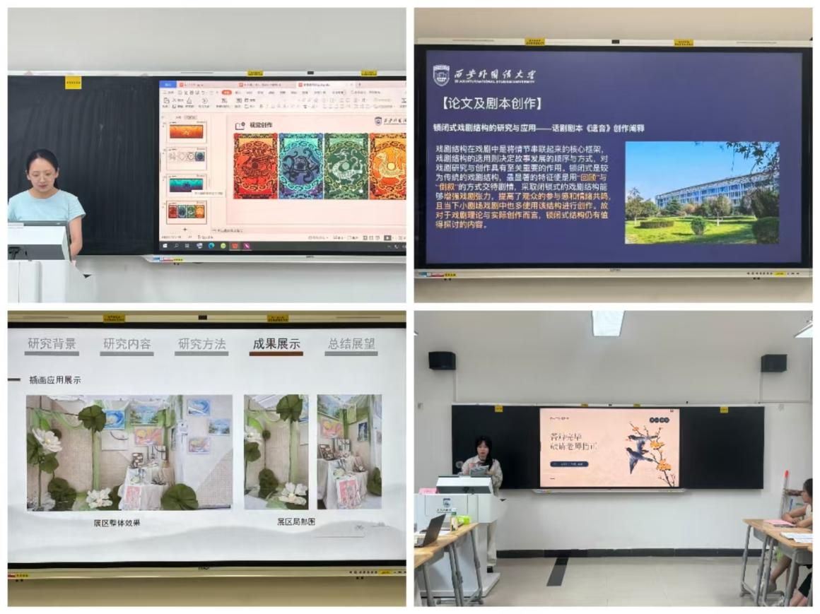 20名硕士研究生分入4组参与答辩,其中设计领域研究生11人、戏剧与影视领域研究生9人。由行业专家、合作导师和院内导师组成的答辩委员会共计20人。4名答辩主席分别是陕西省百优人才、享誉全国的著名图画书专家黄丽老师、西安欧亚学院艾德艺术设计学院教授吴娅妮、陕西实验话剧院副院长仝斌以及西安儿童艺术剧院项目运营中心主任王涛。16名答辩委员除院内导师外,还由来自艾德艺术设计学院的合作导师。其中,教授侯小春、邹满星,副教授常艳、朴美善、薛璇、王媛、钱钧、王彬担任设计领域答辩委员,教授徐雅宁、陈健雄、魏英,副教授陈乃嘉、南华、崔珊、谢钦、张省会担任戏剧与影视领域答辩委员。