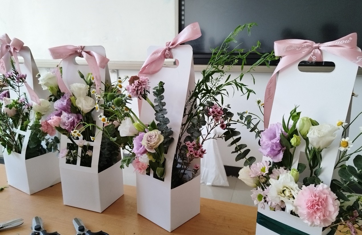 看着自己亲手创作的插花作品,大家感到满满的成就感和幸福感,纷纷拍照留下美丽瞬间,现场一片其乐融融。