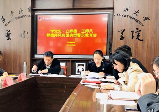 党委在JE301召开师德师风负面典型警示教育会,全院教职工参加学习。学校教师思想政治与意识形态学习互促组计划党委学工部王晓青、马克思主义学院对接教师王桦受邀参加学习会。会议由党委书记梅林竹主持。