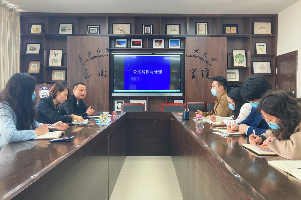 杨瑞以《公文写作与处理》为题,从公文的作用、定义、种类、格式、写作要求、公文应用范围及格式特点、公文的处理程序、工作材料写作等八个方面进行讲解,并结合例文剖析了公文写作中应注意避免的常见错误。
