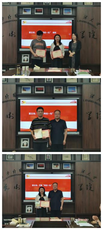 随后,屈晓通报了学院校级“两优一先”及学校深入学习贯彻习近平新时代中国特色社会主义思想暨庆祝建党102周年系列活动获奖集体和个人名单,对院级“先进基层党支部”、“优秀共产党员”等进行表彰,并颁发了证书。