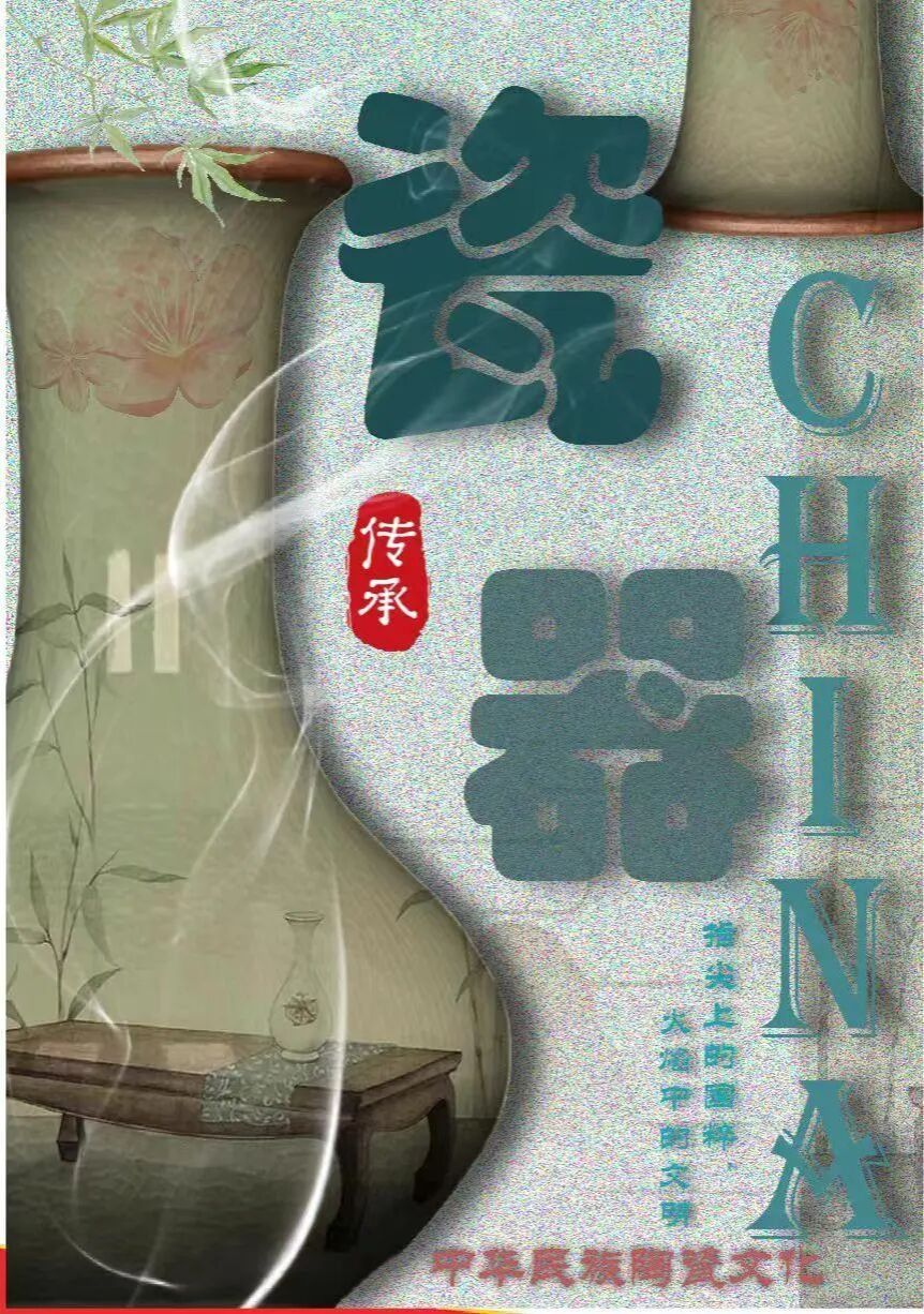 作品以中华陶瓷文化为核心,采用手绘与数字合成相结合的创作手法,以现代视觉设计语言诠释瓷器的文化底蕴与时代生命力。画面以青瓷瓶为核心载体,温润的青釉色调呼应中式陶瓷的雅致美学,象征千年陶瓷工艺的传承脉络。作品借“瓷器”与“CHINA”的渊源关联,彰显中华陶瓷文化的独特价值,传递出坚定的民族文化自信。