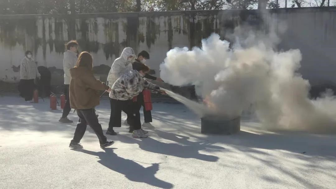 随后进行的消防演练环节,学生分批进行了火灾现场逃生演练和灭火器使用演习。在烟雾帐篷中,学生们切身感受到火场逃生的紧迫氛围,利用学到的火场逃生知识顺利完成逃生。面对熊熊燃烧的火焰,学生们井然有序,在保卫处老师的指挥下,使用灭火器进行灭火。灭火器使用演习让学生在动手实操中得到学习和锻炼。