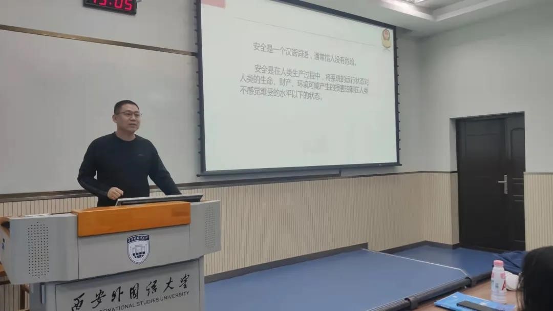 保卫处处长黄利峰从校园人身安全和财产安全两个方面讲解大学生群体在校园中可能遇到的安全问题。大学生群体普片存在防范意识差、辨别能力弱、应对水平低的现象,黄利峰以多起案例为警示,提醒学生要珍爱生命,清明头脑,注重生命安全和网络安全,并向学生们提出忠告:树立正确的人生观和价值观,具有正确的消费观和金钱观,学习掌握安全知识,增强防范意识。