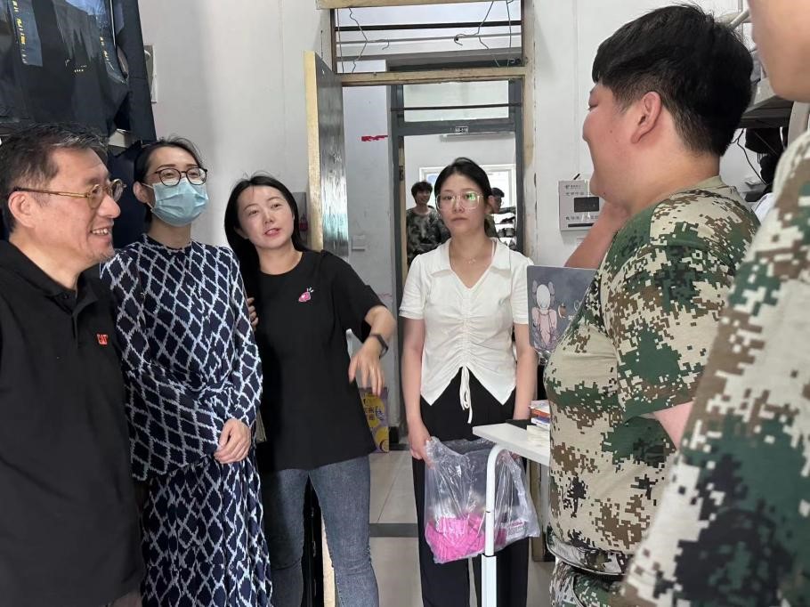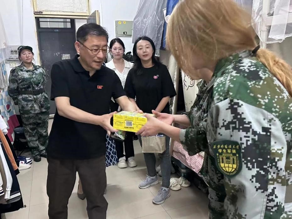 领导深入学生宿舍,与参训同学们亲切交流,检查宿舍内务整理情况,了解学生们的军训体验及需求,确保为学生们提供更良好的服务以保障军训工作顺利完成。李杰,梅林竹充分肯定了同学们训练的认真,鼓励同学们继续保持良好的训练状态,圆满的完成此次军训的任务。并希望同学们能将此次军训学习到的优良习惯带到之后的学习中去,用最饱满的精神状态去迎接之后的学习。院领导也为同学们送去消暑药品、饮品和零食以慰问同学们。