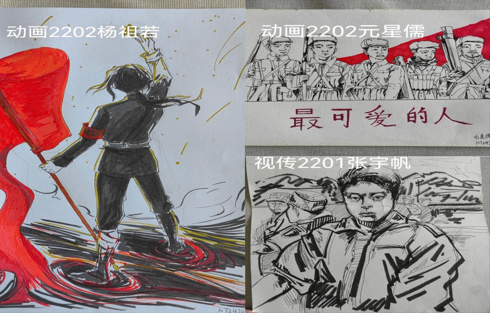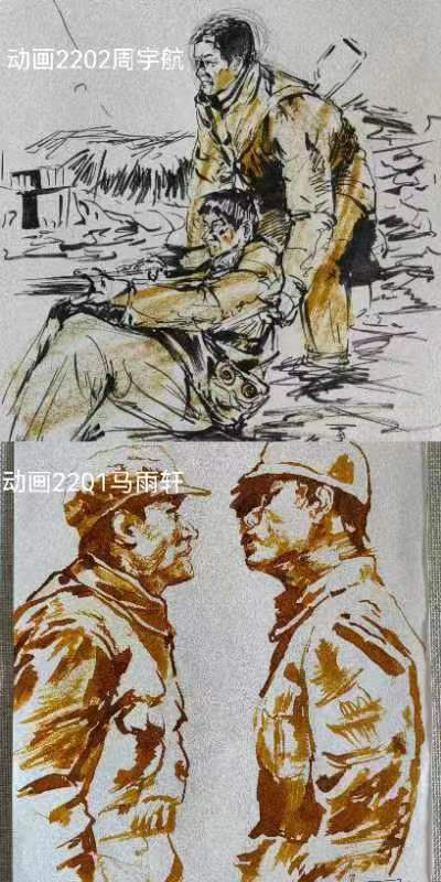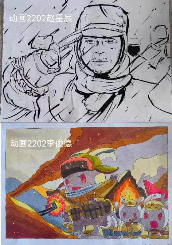 同学们看完电影《长津湖》后,被其观影过程中,同学们被影片跌宕起伏的剧情和气势恢宏的战争场面深深震撼,更被勇士们的智慧、勇敢和大无畏的牺牲精神所折服。爱国主义精神的种子悄然在他们的心中扎根、滋长。同学们根据自身专业优势,纷纷书写心得体会,绘制书画作品。