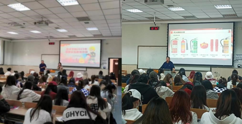 赵鹏辉通过生动的实际案例向同学们讲解校园火灾诱发的原因和校园生活中常见的安全隐患行为,同时还向大家普及了消防器材的使用方法和分类,也呼吁大家自觉遵守学校的相关管理规定,不在宿舍使用违禁电器,自觉保护公共场合的消防设施。
