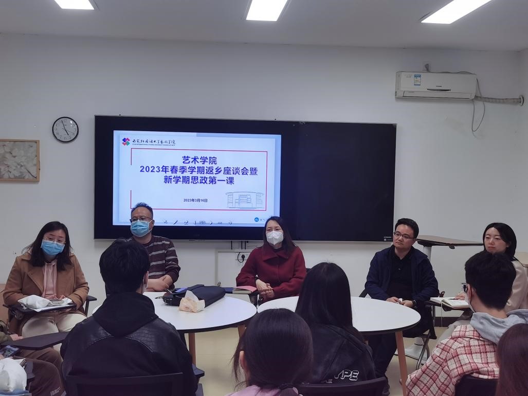 在公寓学生干部工作站举办2023年春季学期返乡座谈会暨思政第一课活动。学院党委书记梅林竹、副院长邹满星、副院长邓飞以及各年级辅导员和学生代表参加本次活动。