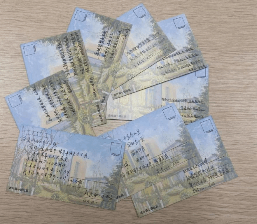 座谈会后,大家集体观看了女篮世界杯决赛,中国女篮在本次世界杯中取得亚军的好成绩,同学们被女篮姑娘们不畏强敌、昂扬向上的精神风貌所震撼。纷纷表示希望自己今后通过专业能力也能为国家做贡献。同学们现场手写了祝福贺卡,共贺祖国母亲生日,共祝母校70华诞。