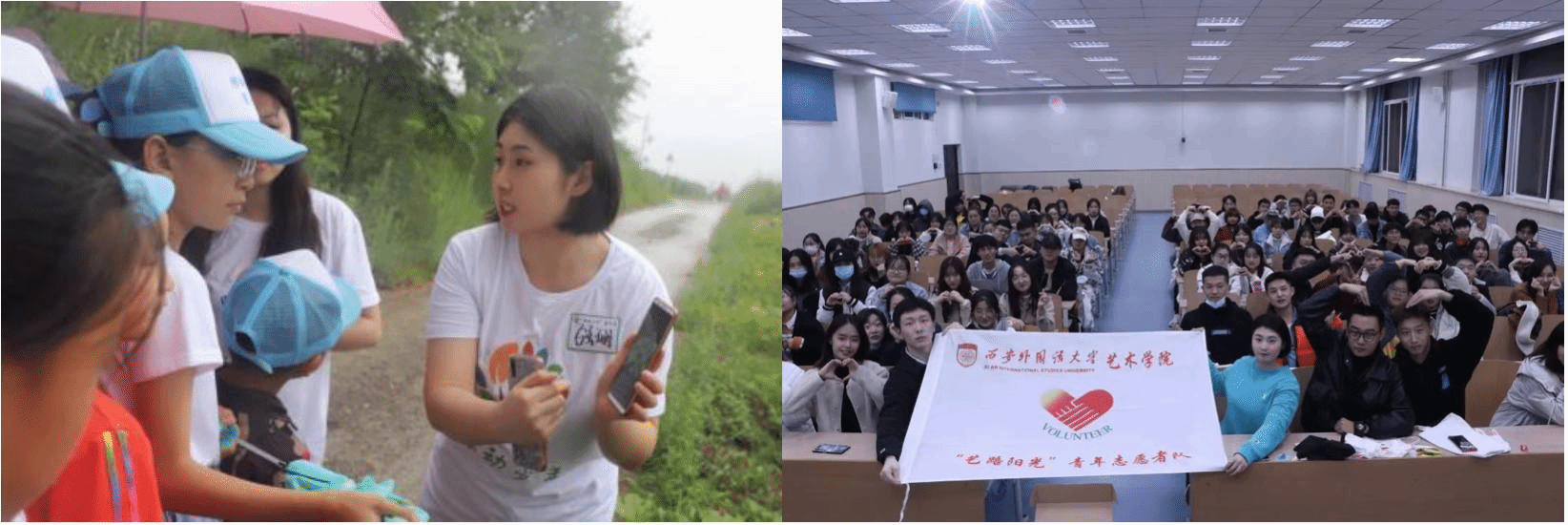在大学期间,我加入了学院的艺路阳光志愿者队,参加了第七届全国人口普查、为留守儿童上课、带队三下乡等志愿服务,这些经历使我对活动的策划和统筹有了一定提升,也让我收获了珍贵的友情和回忆。