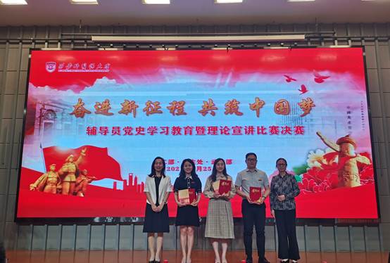 辅导员理论宣讲比赛在JA111报告厅举行,校党委副书记马洁,宣传部、组织部、统战部等部门负责人出席了本次大赛,各学院党委书记、副书记、学工办主任以及全体辅导员和部分学生代表到场观摩。