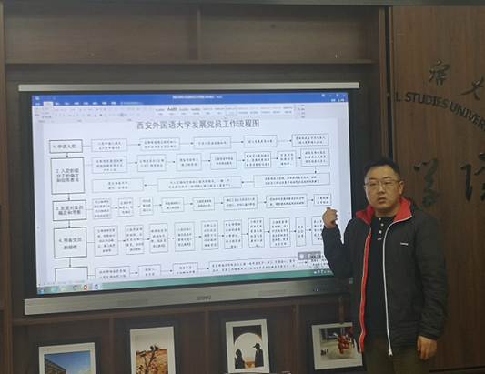 随后,组织员兼学工办主任程成对本年度发展党员工作进行了安排,并从发展流程、资料填写时的注意事项等方面对学生党员发展业务进行了专题培训。