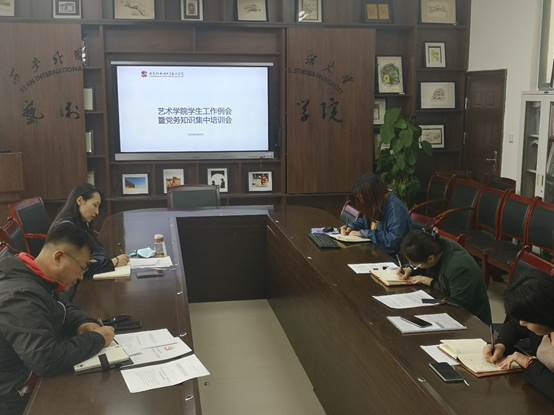 在会议室召开学生工作例会暨党务知识业务培训会。学院党委书记、组织员兼学工办主任、全体辅导员参加会议。会议由学院党委书记梅林竹主持。