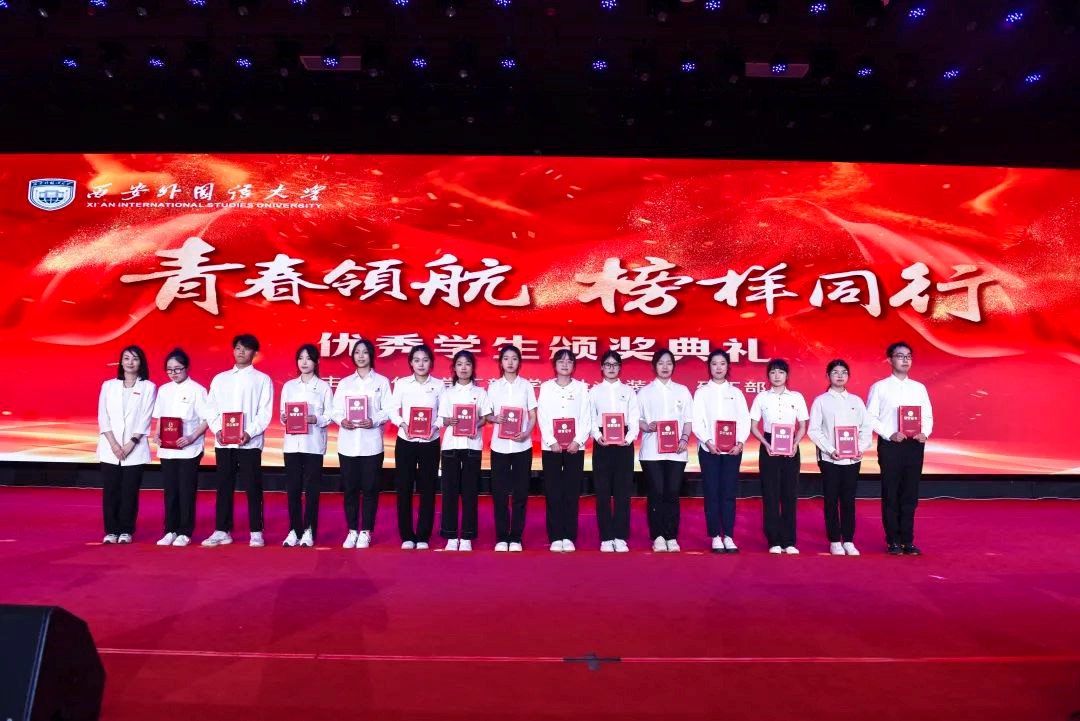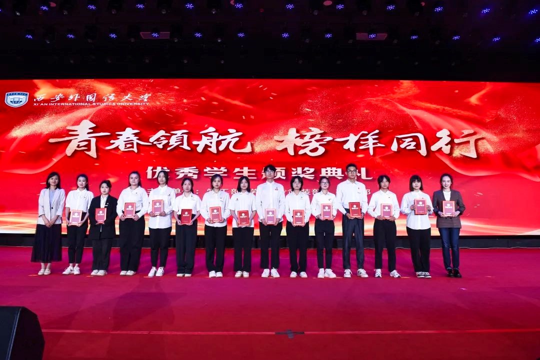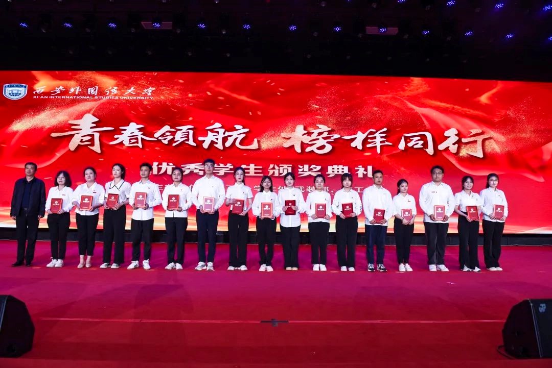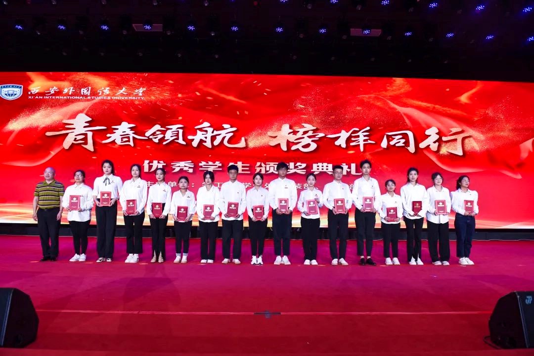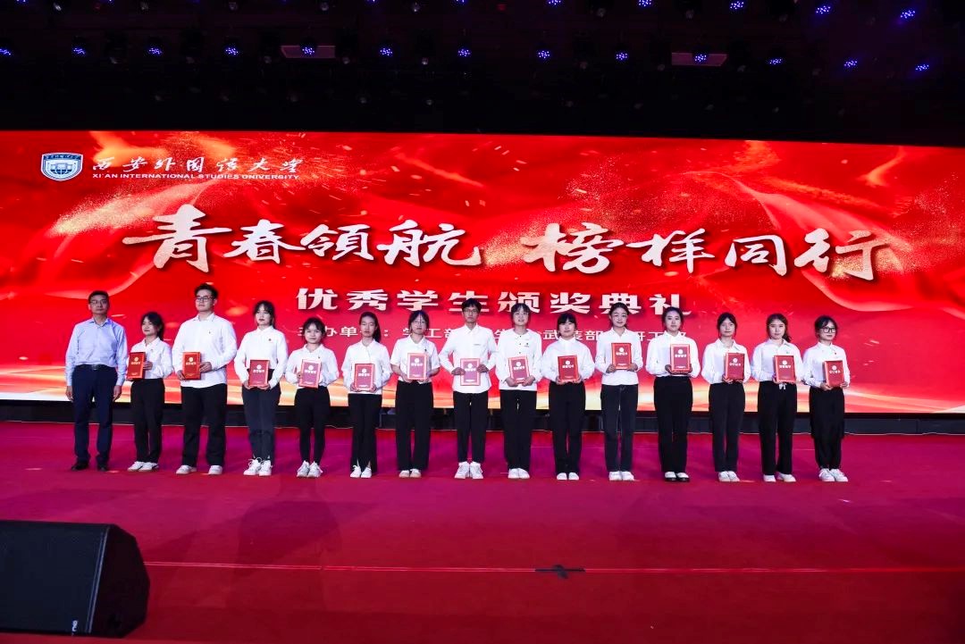 奖学金获得者代表在熠熠生辉的舞台上接受学校的表彰,感受学生时代的高光时刻。