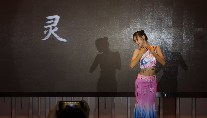青春的音符飘扬,裙摆随着旋律舞动,飘摇曳曳,让我们踩着鼓点,一曲《灵》带着我们走进传统文化的世界。