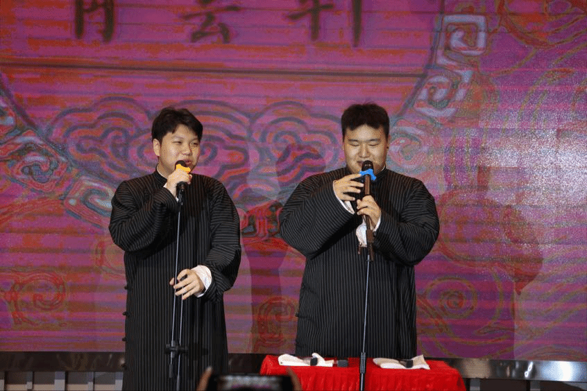大褂长衫,醒目折扇,逗哏捧哏丢包袱,说学逗唱真功夫!于智捷、李佳郅两位同学的精彩演出,让整个会场充满了欢笑。